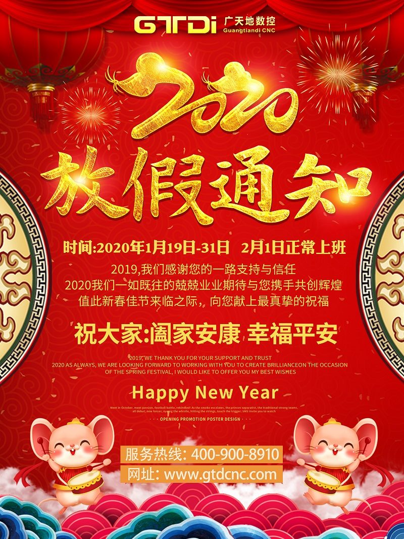 廣天地?cái)?shù)控2020年春節(jié)放假時(shí)間安排通知