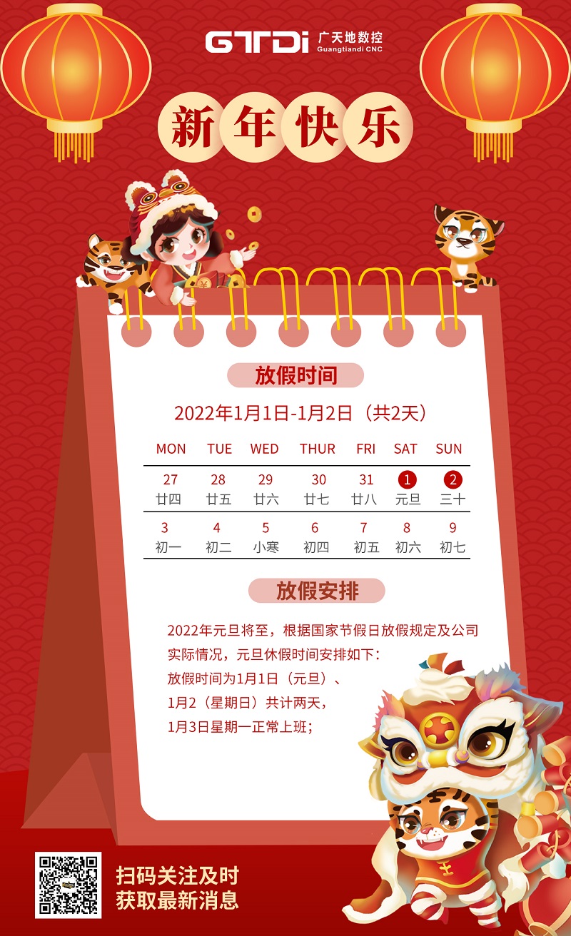 廣天地?cái)?shù)控2022年元旦節(jié)放假時(shí)間安排