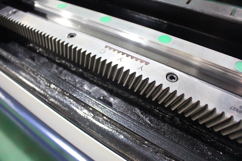 而斜齒齒條、齒輪由于嚙合度更好,傳動(dòng)平穩(wěn),噪聲小;重合度大,降低了每對(duì)齒輪的載荷,提高了齒輪的承載能力,因此在光纖激光切割機(jī)制造中被廣泛應(yīng)用。