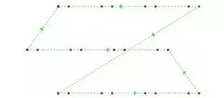 早期的光纖激光切割機的空程如下圖所示,切割頭要次第完成三個動作:上升(到足夠安全的高度)、平動(到達點B的上方)、下降。